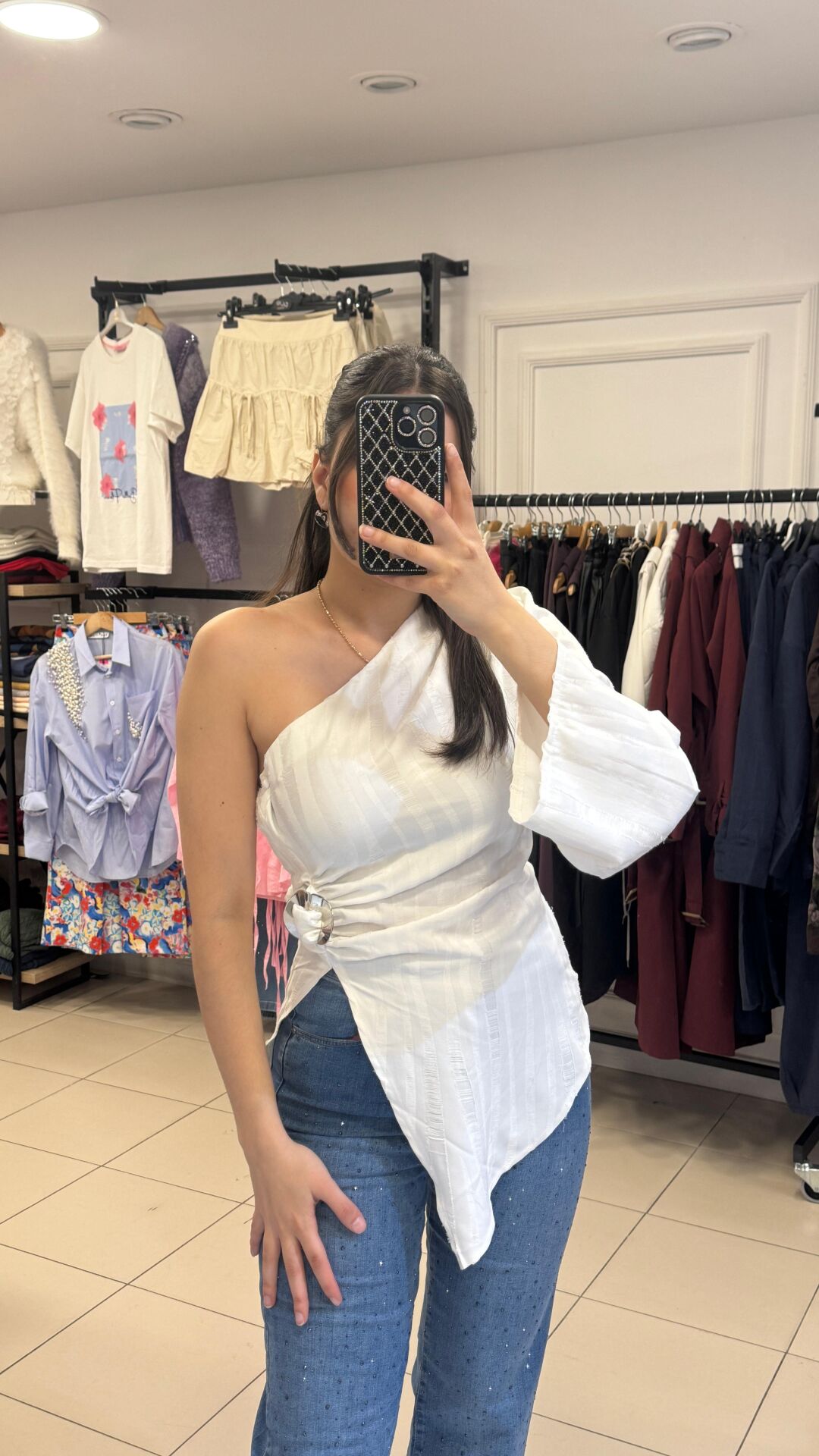 - Kesim & Tasarım: Asimetrik kesim – ön taraf uzun, arka taraf kısa (modern, hareketli ve dikkat çekici siluet)