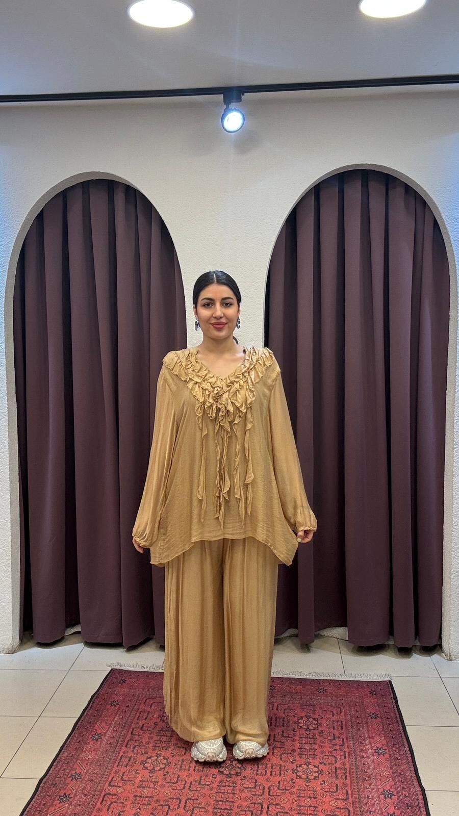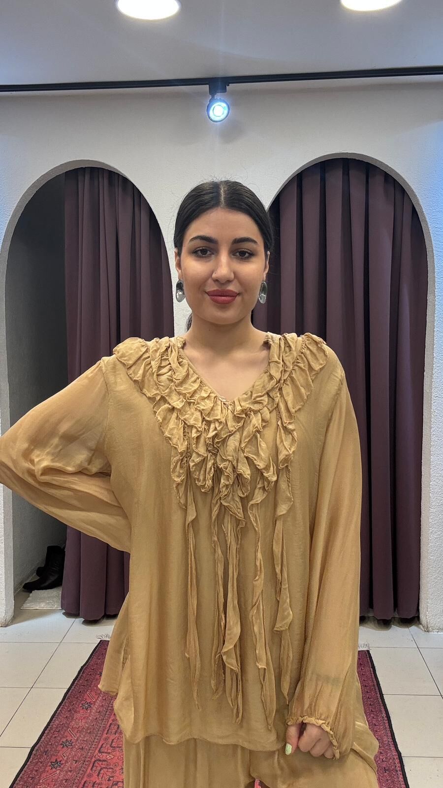 BEJ FIRFIR DETAYLI SALAŞ İPEK TAKIM 50