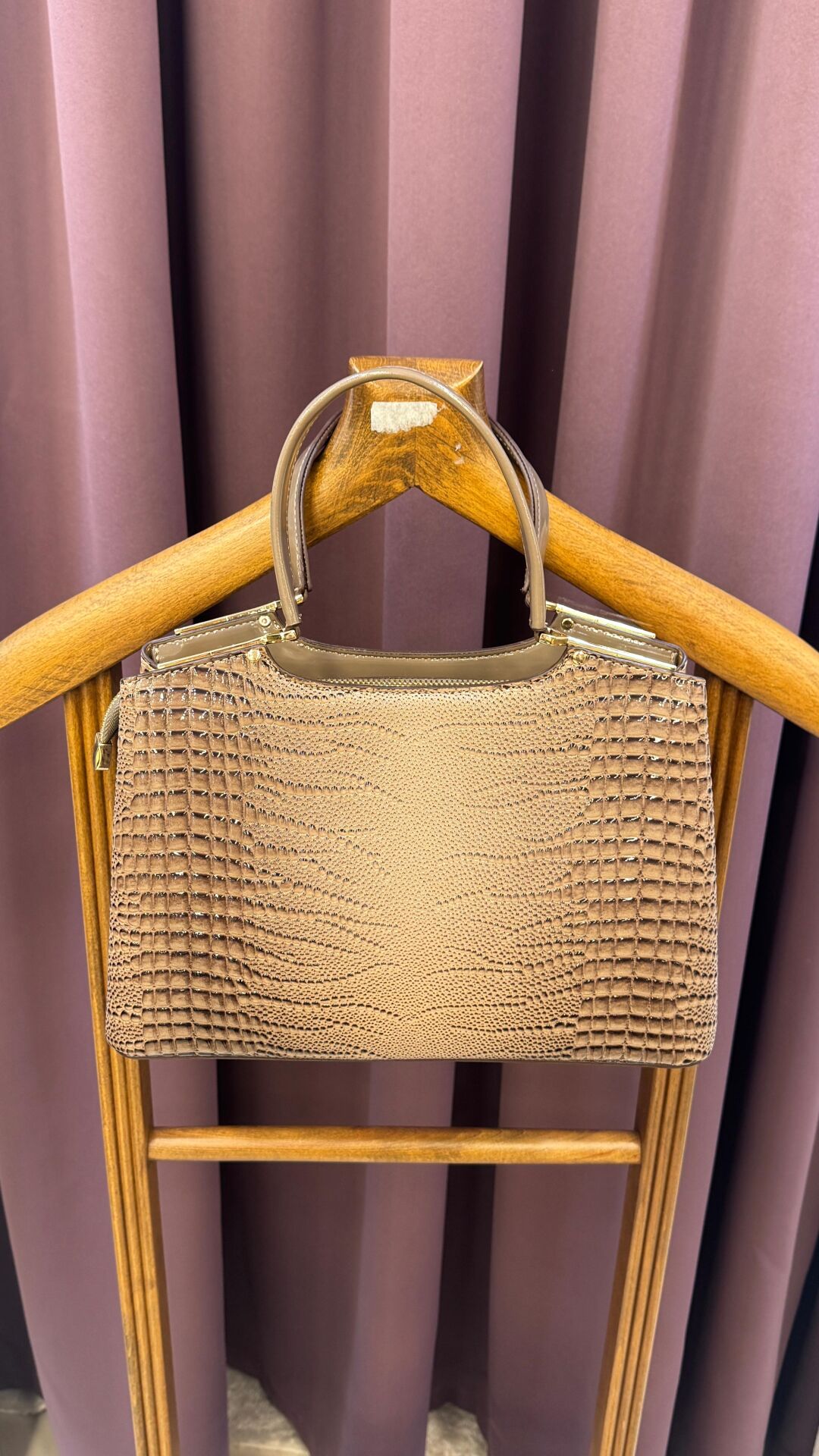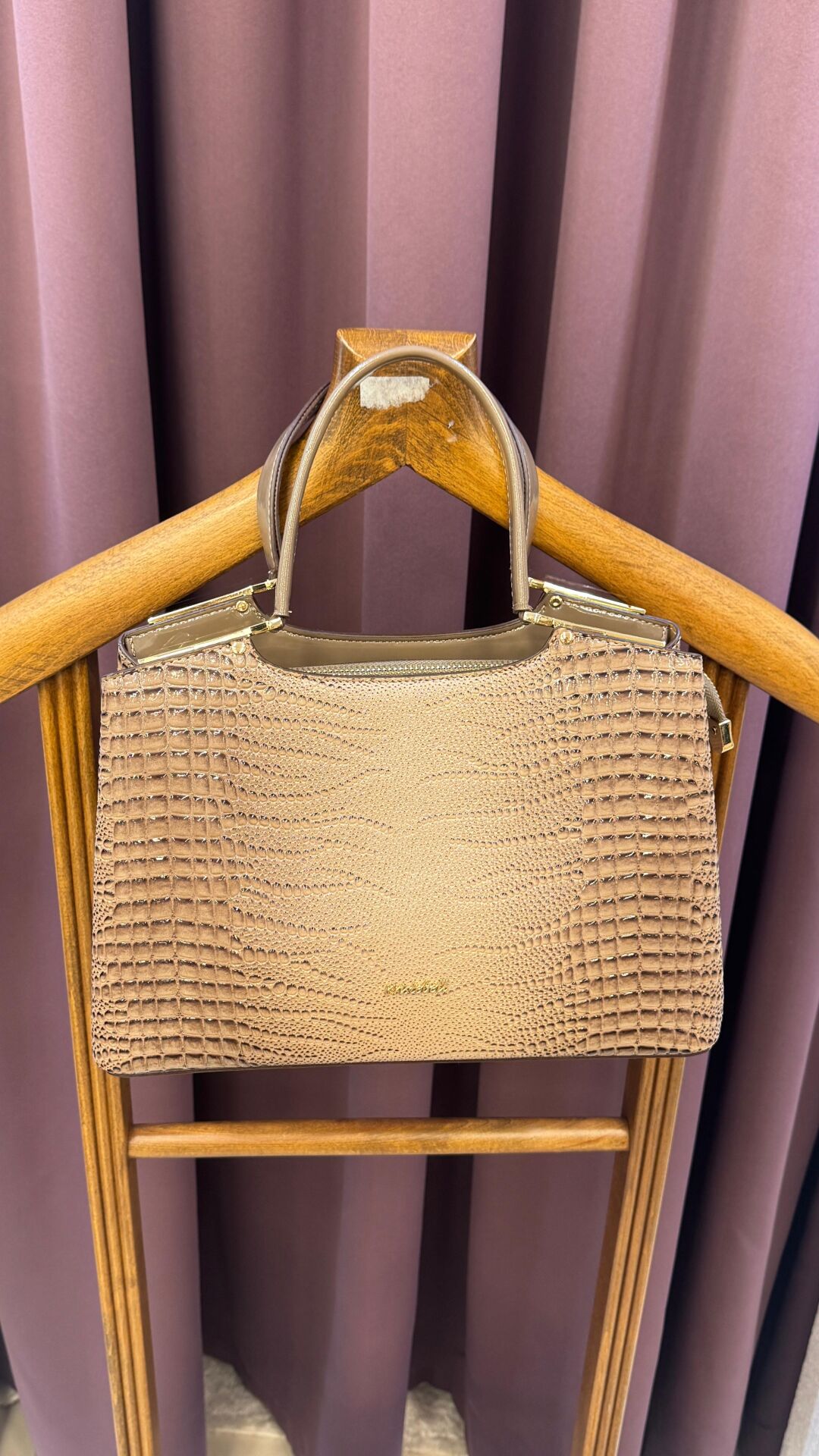Bej / Kamuflajlı taba / Açık kahve tonu (kroko dokulu, dalgalı desenli, altın detaylı klasik el çantası)