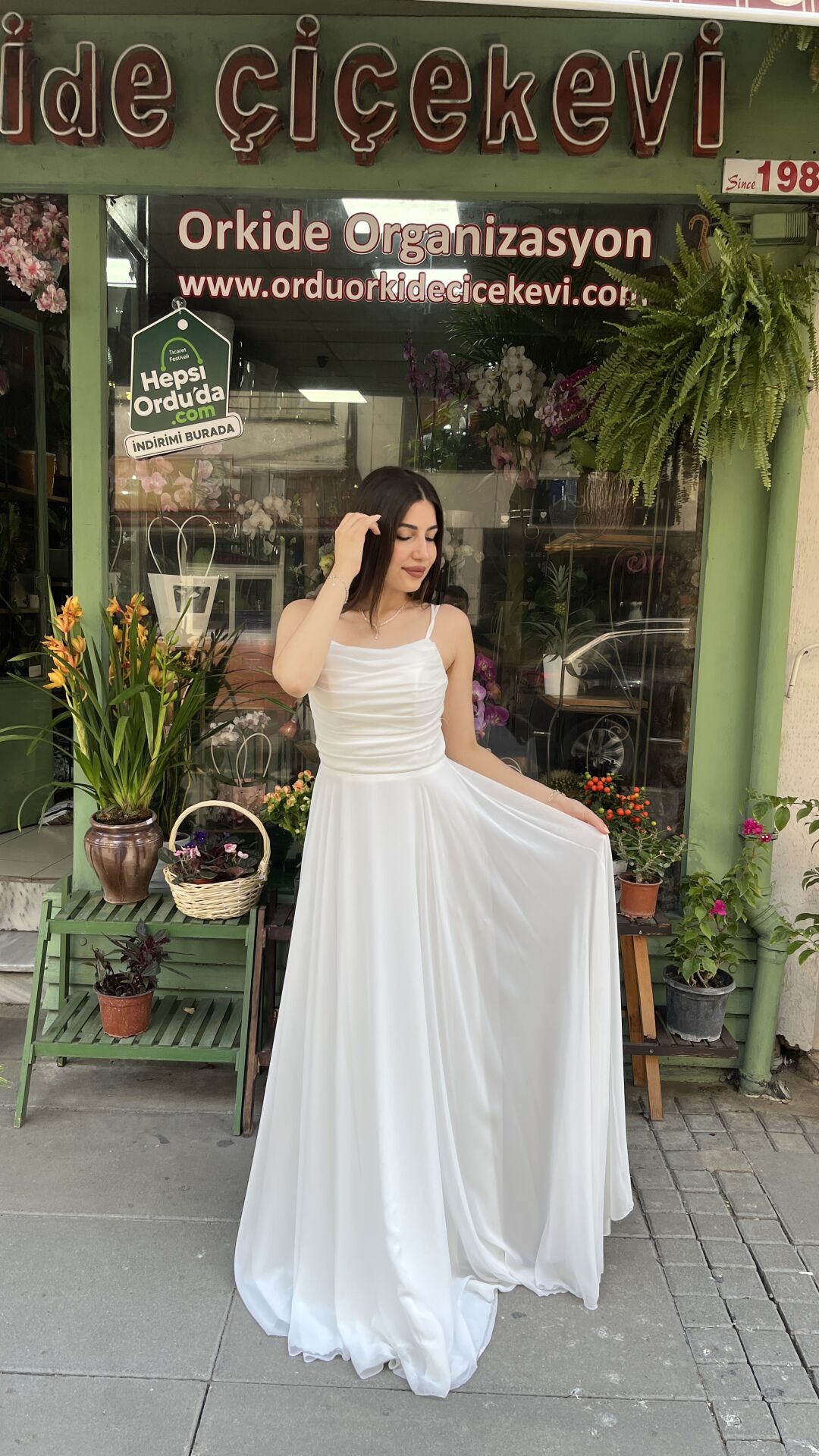 Şık ve zarif beyaz ip askılı tül elbise, özel günlerinizde şıklık katacak bir seçenektir. İnce ip askıları ve tül detaylarıyla dikkat çeken bu elbise, zarif ve feminen bir görünüm sunar. Tülün hafif dokusuyla rahatlıkla hareket edebilir ve özgürce dans edebilirsiniz. Büyüleyici bir görünüm elde etmek isteyenler için ideal bir seçenek.