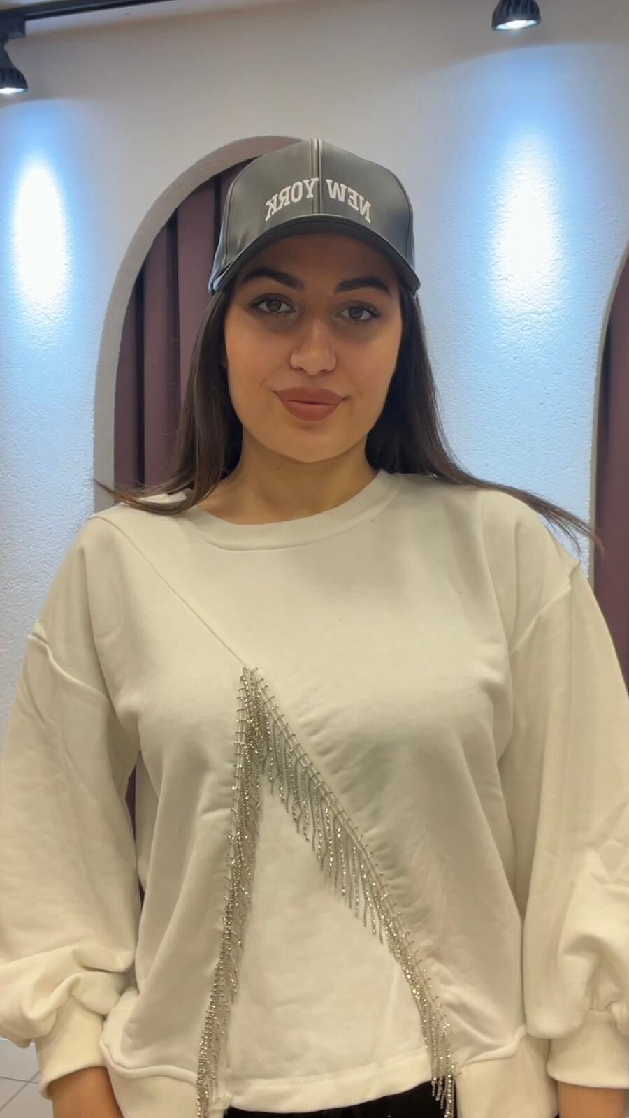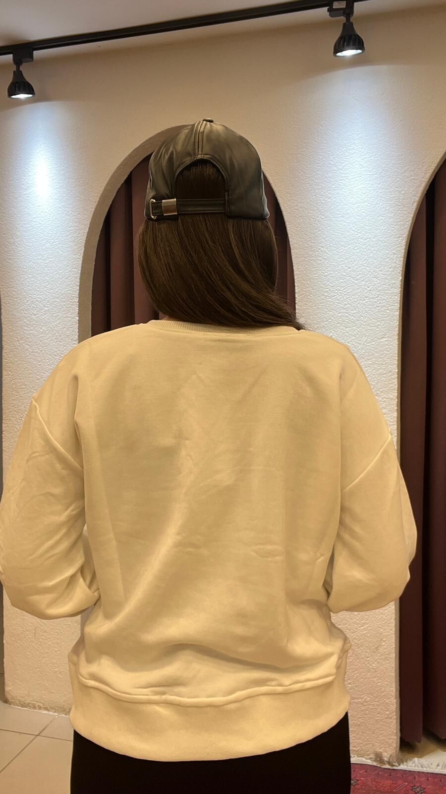BEYAZ YUVARLAK YAKA TAŞLI İPLİ SWEAT