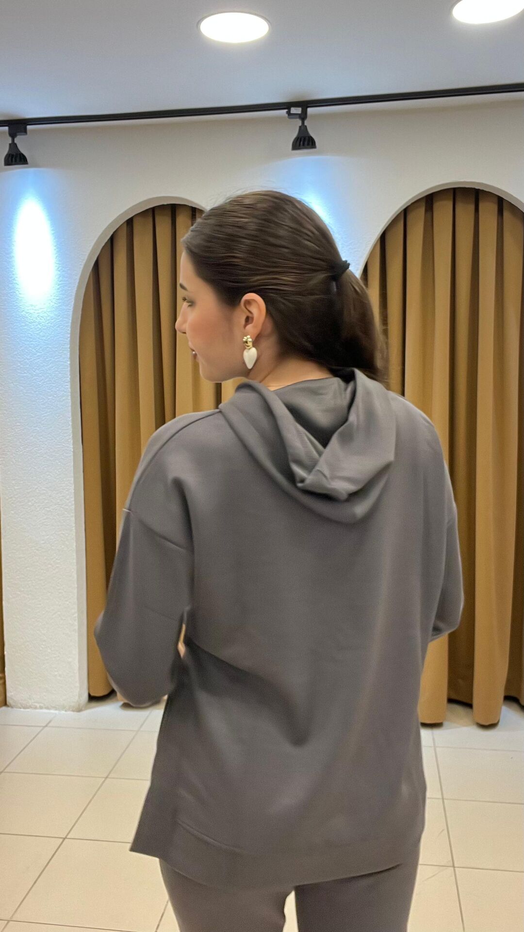 Üst Parça: Kaldik bir hoodiedem farklı dökümlü ve oversize yapısı sayesinde isterseniz kalçayı kapatacak uzunlukta isterseniz belli açıkta bırakan çırp formunda kullanabilirsiniz
