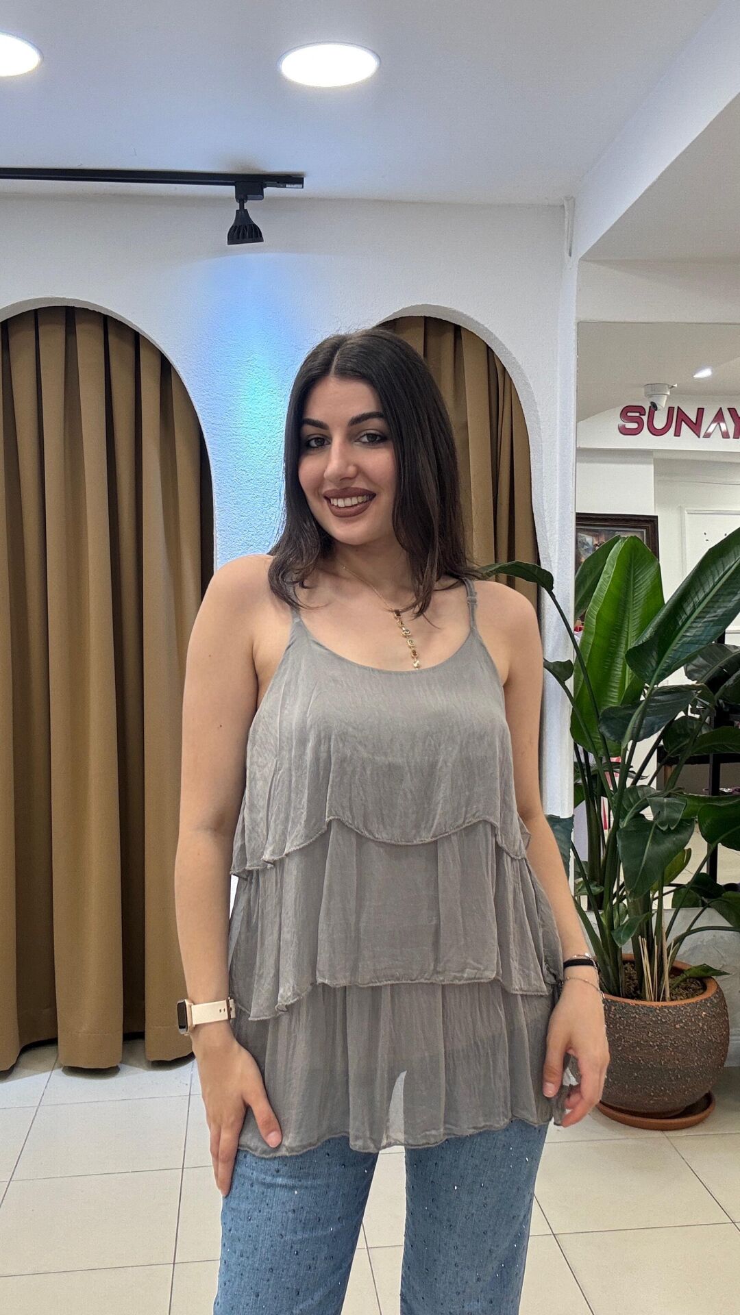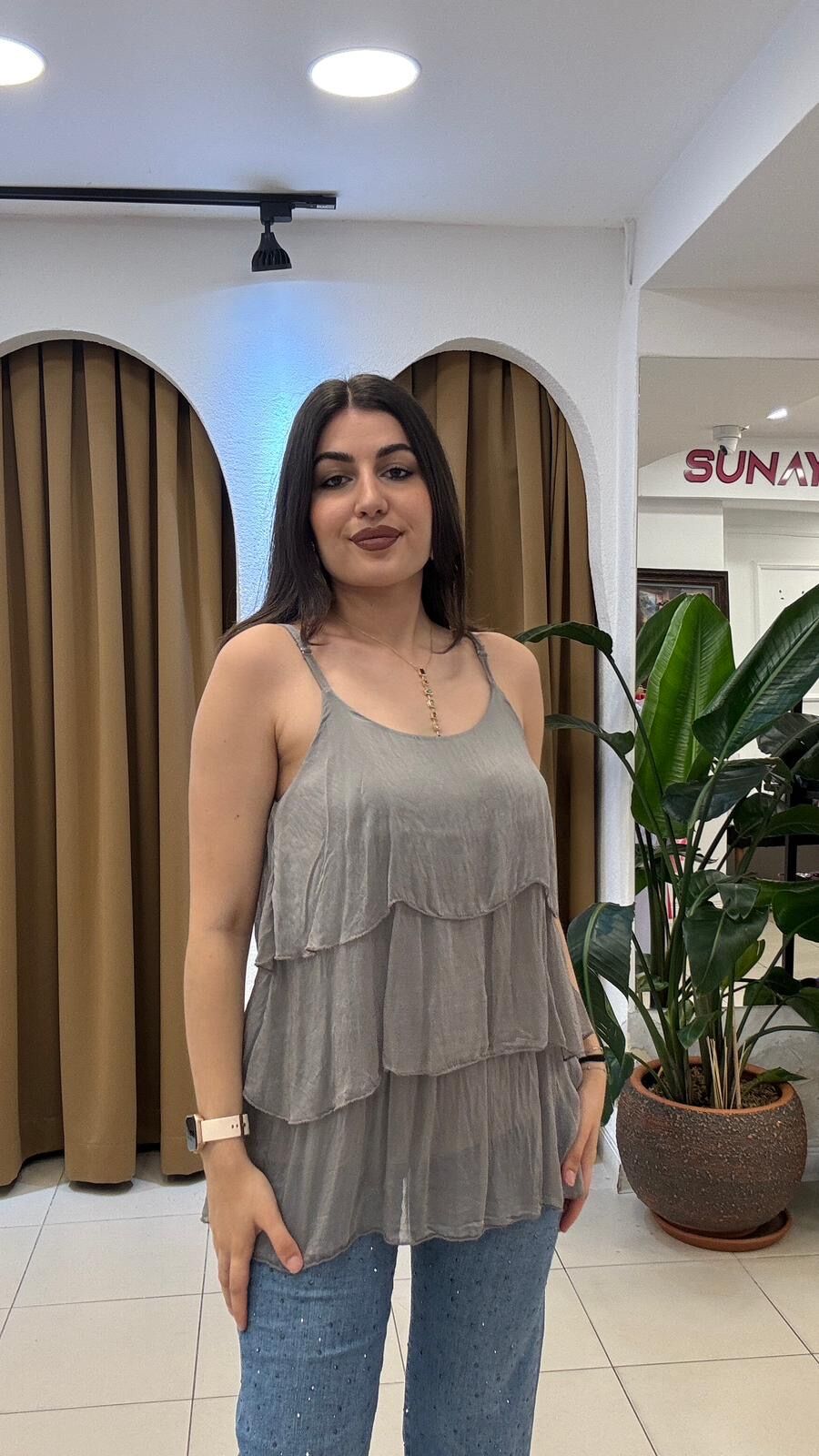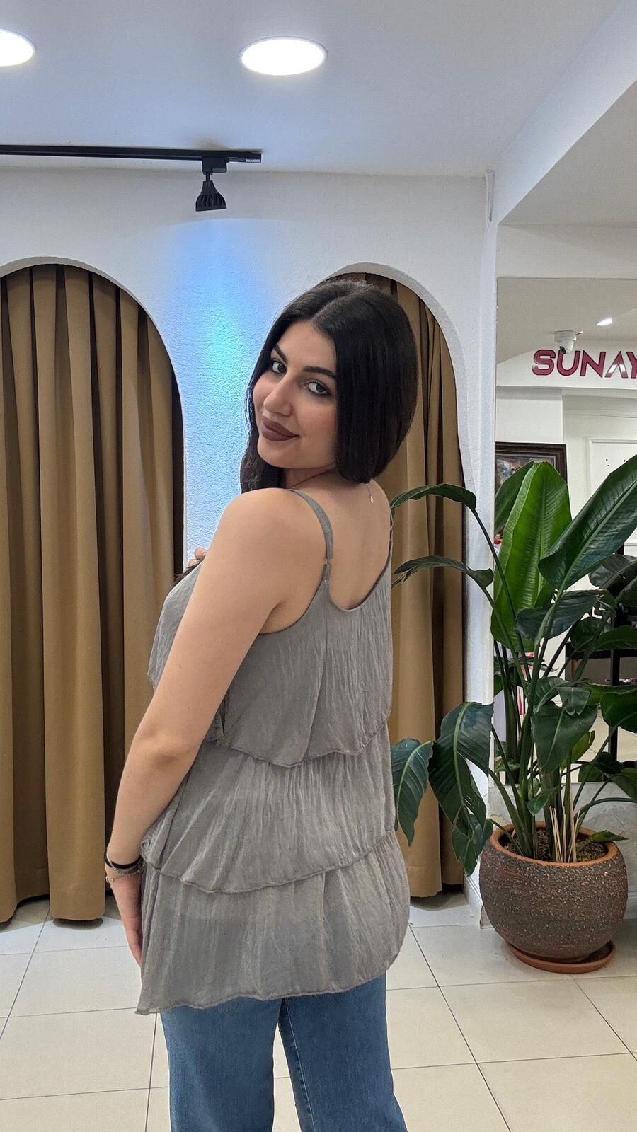 Gri ithal bluz