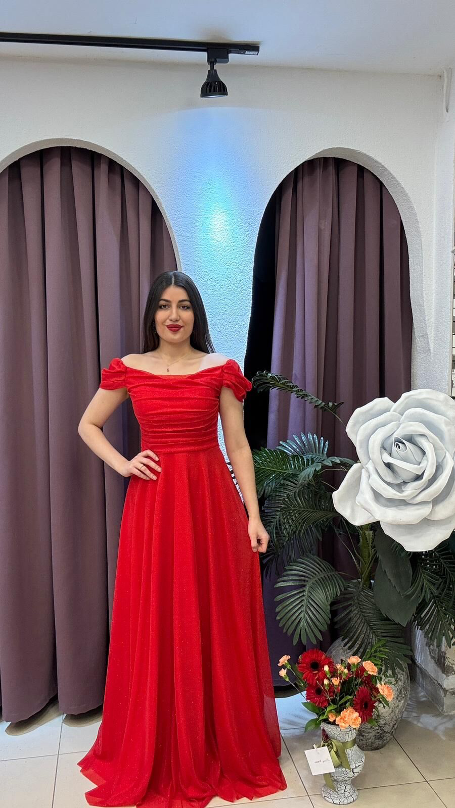 - Tasarım: Omuzlarda belirgin ışıltılı detaylar (sim, payet, boncuk veya metalik işlemeler) bulunuyor. Bu detaylar omuzları öne çıkarıyor ve elbisenin en dikkat çekici kısmı.