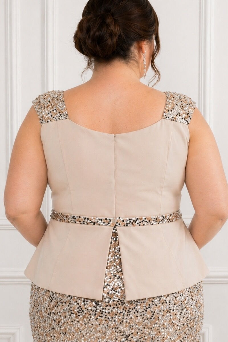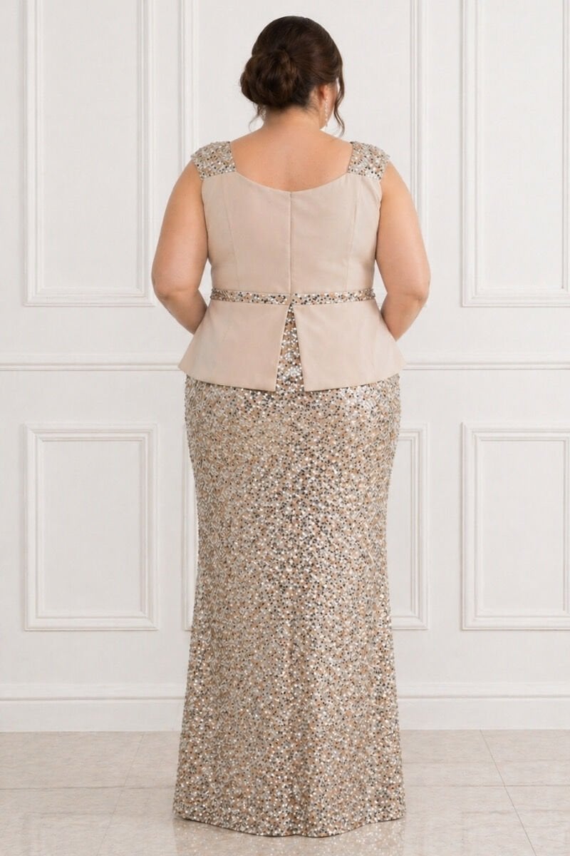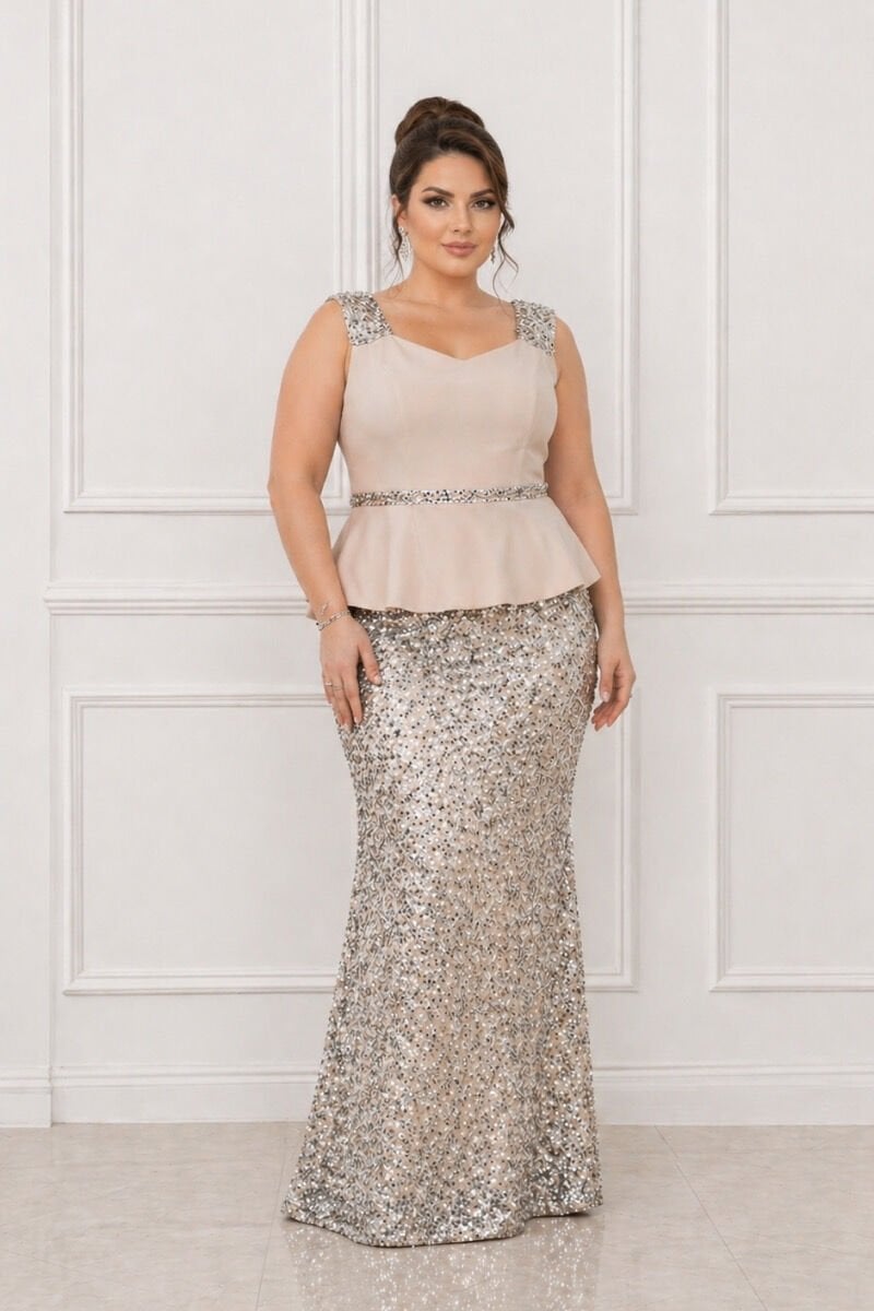 Kadın Büyük Beden Abiye Elbise Vizon Payetli Uzun Abiye Mezuniyet Düğün Nikah Davet Elbisesi 52