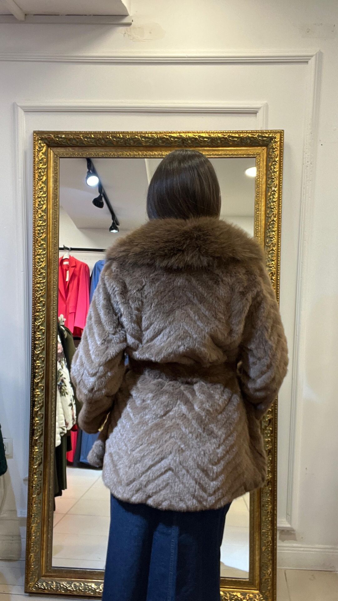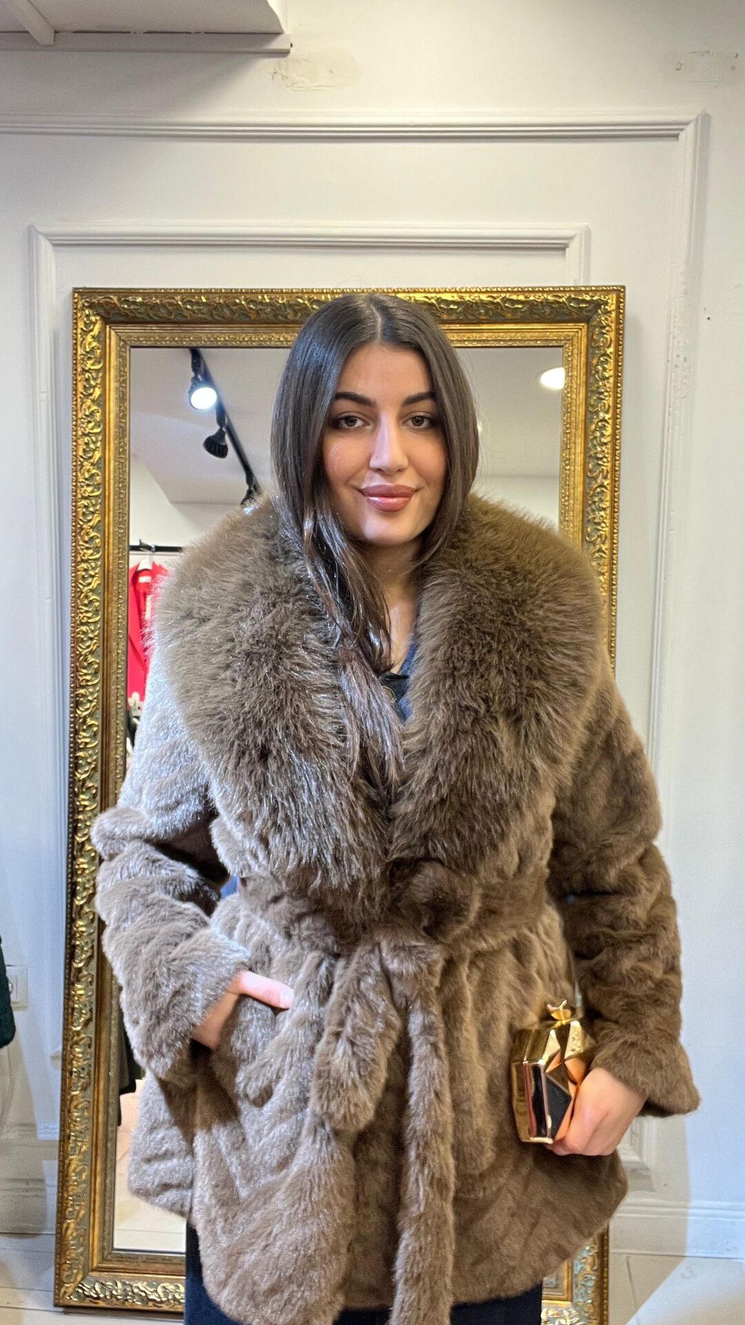 Kahverengi belden bağlamalı havalı ithal kürk