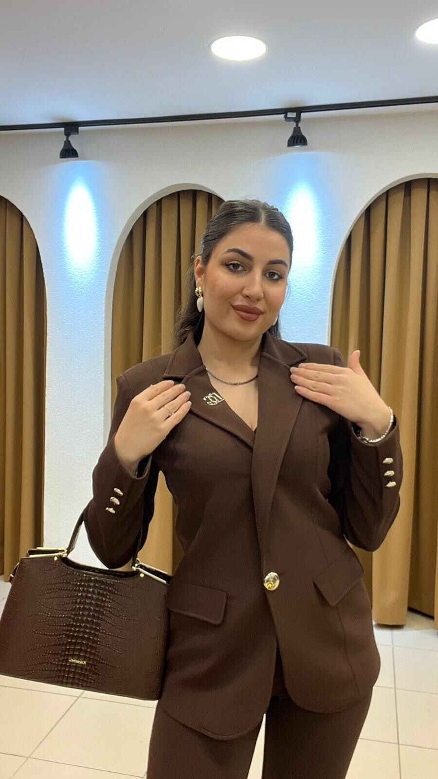 Detaylar: Altın rengi metal düğme ve manşet detayları