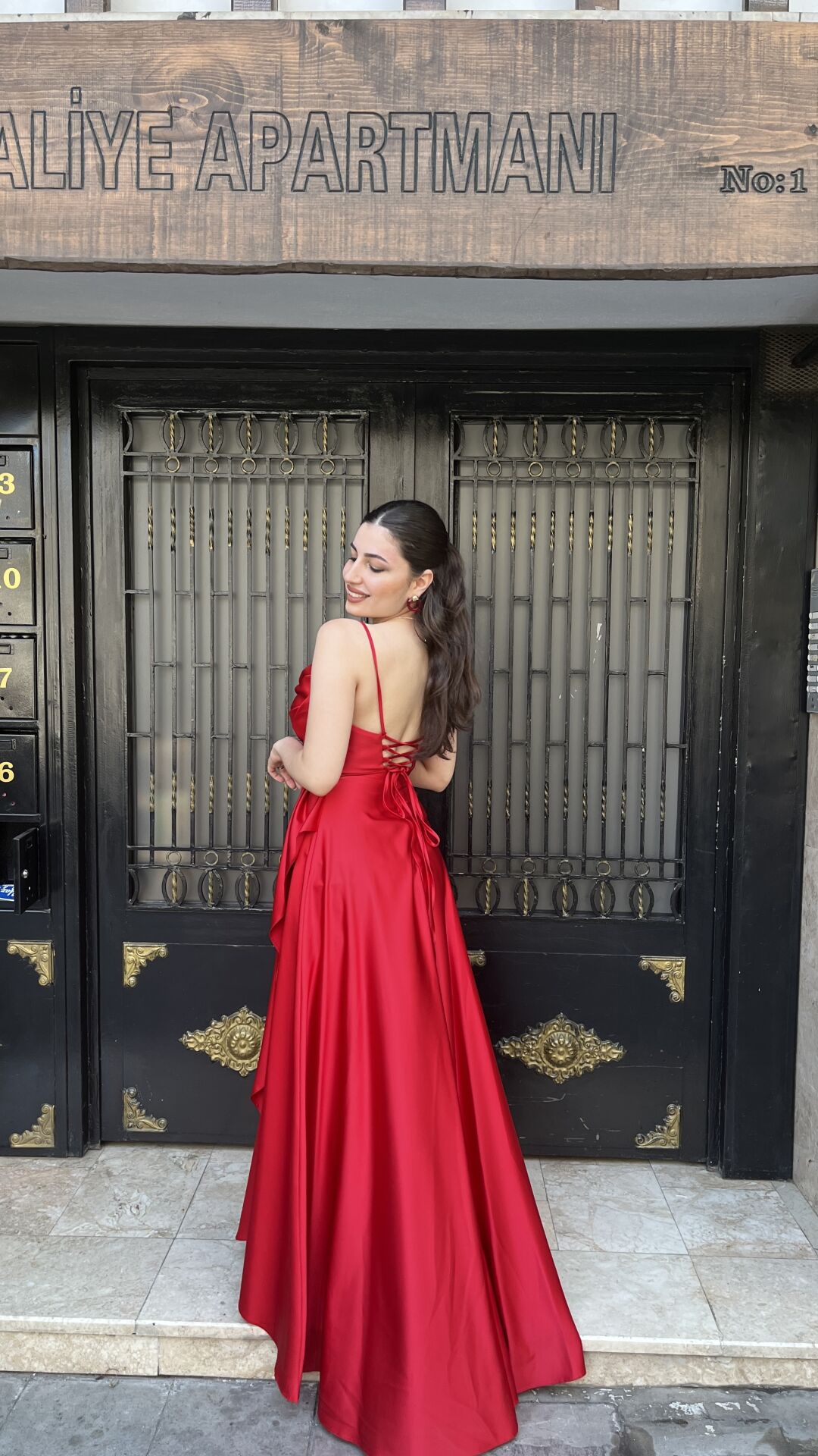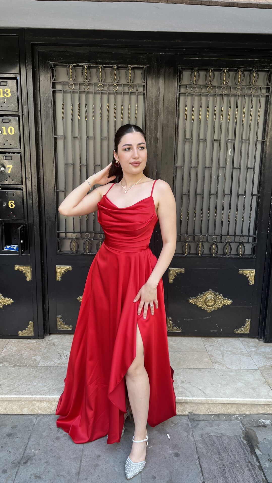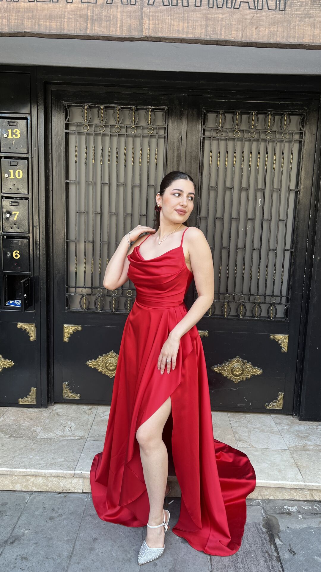Kırmızı yırtmaçlı abiye