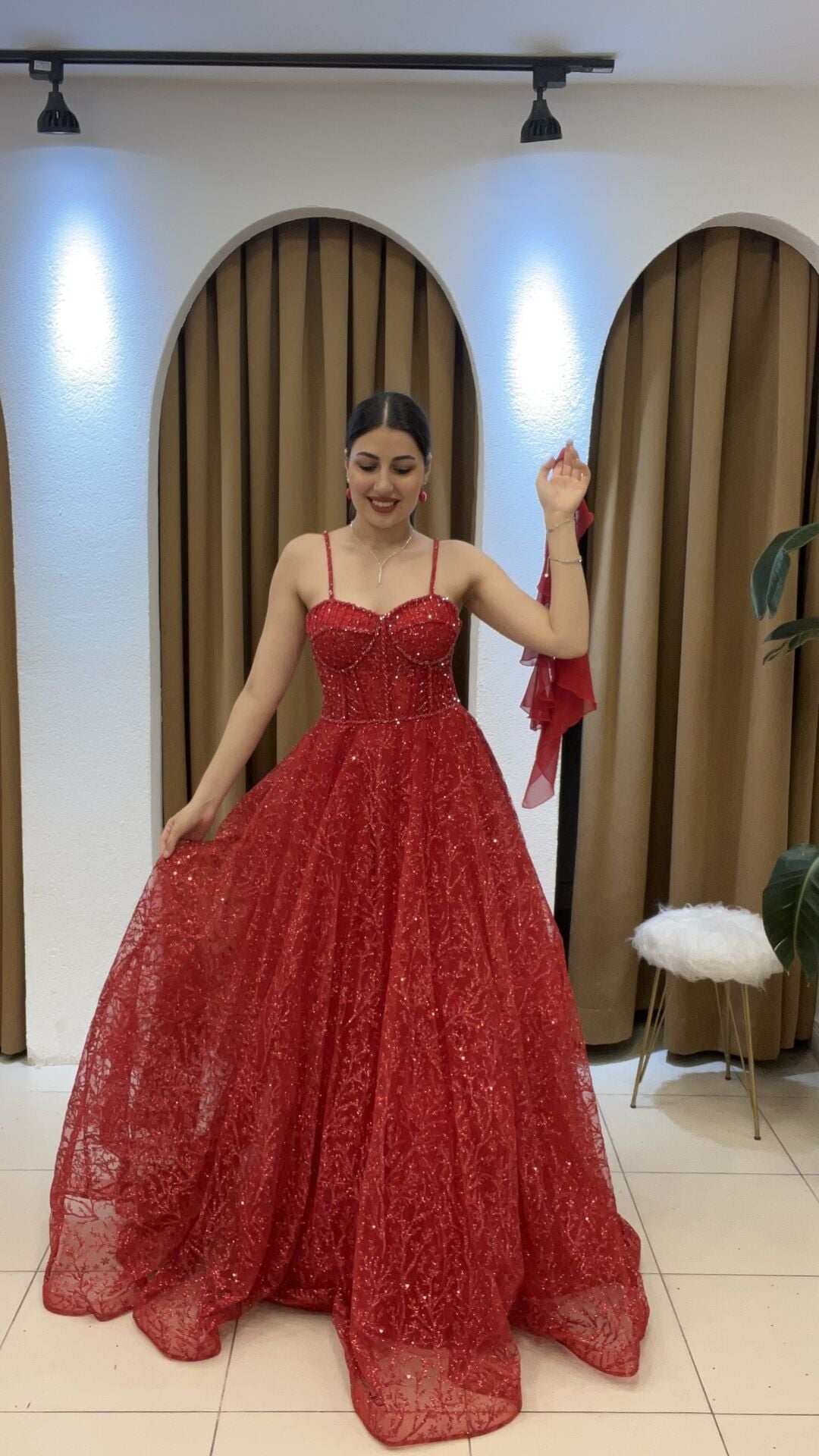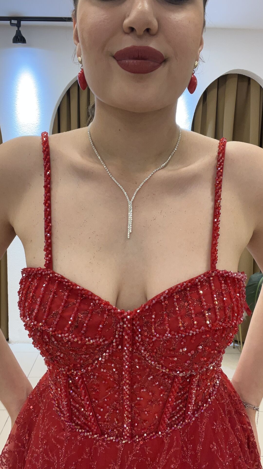 KIRMIZI KORSE DETAYLI SIRT BAĞÇIKLI KABARIK KINA ELBİSE 44 500_5993