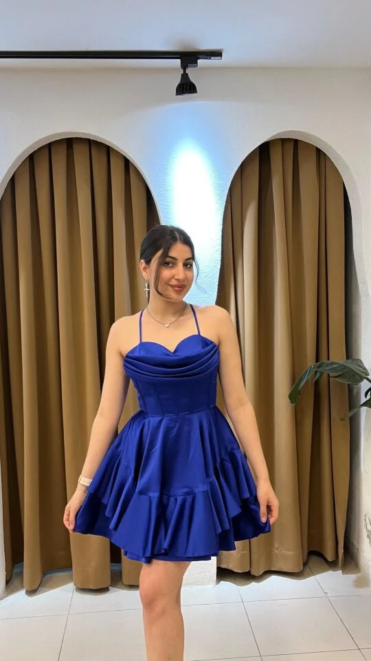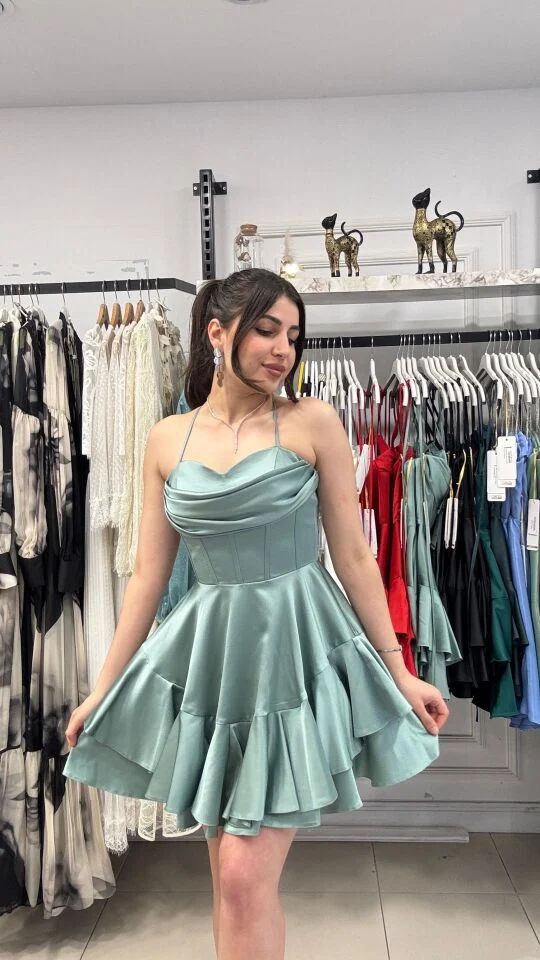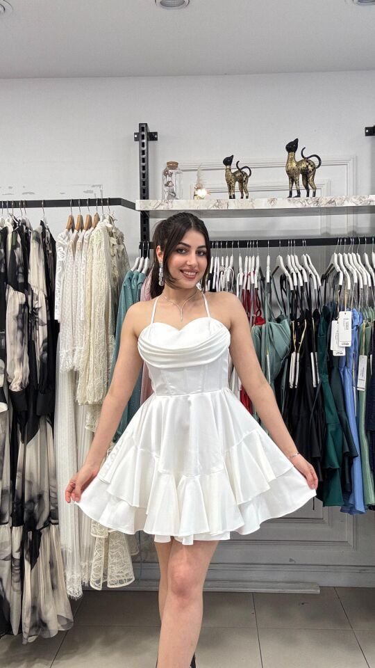 SATEN ÖNÜ DRAPELİ ETEĞİ KAT KAT ELBİSE