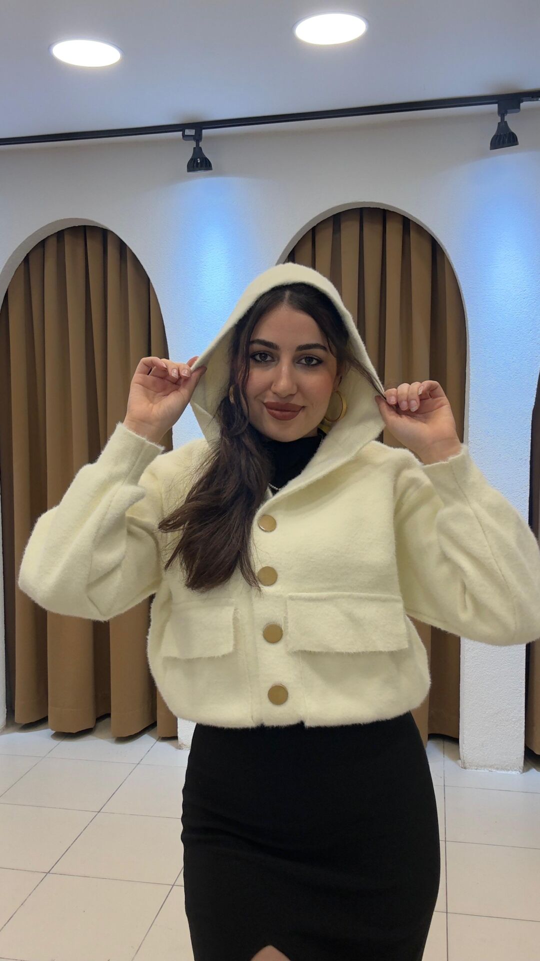 Bu harika krem rengi hırka, hem şık hem de rahat bir tarz sunuyor. Yumuşak ve kaliteli malzemeden üretilmiş olan bu hırka, her mevsimde giyilebilecek bir parça. Klasik kesimi ve zarif detaylarıyla her tarza uyum sağlıyor. Gardrobunuzun vazgeçilmezi olmaya aday!