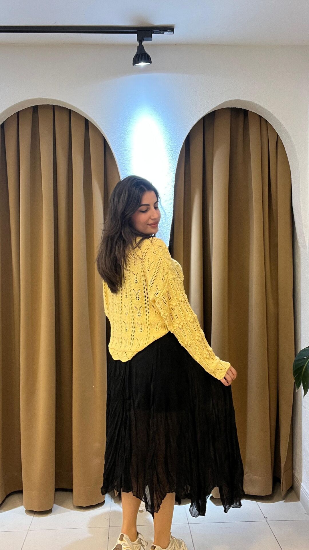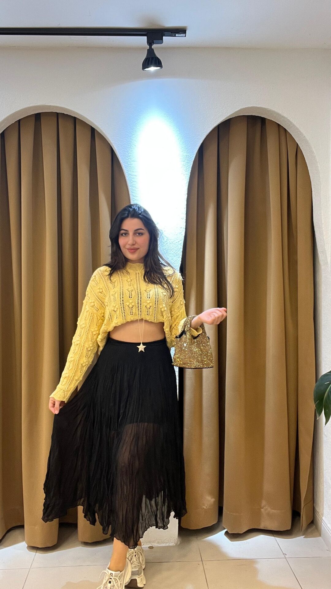 Asimetrik kesim tül etek, şıklığı ve modern tasarımı bir araya getirir. Hafif ve zarif tül kumaşı, hareket halinde zarif bir görünüm sağlar. Farklı boylardaki asimetrik uçlar, dikkat çekici ve özgün bir stil sunar. Özel günlerde veya günlük kombinlerde rahatlıkla tercih edilebilir.