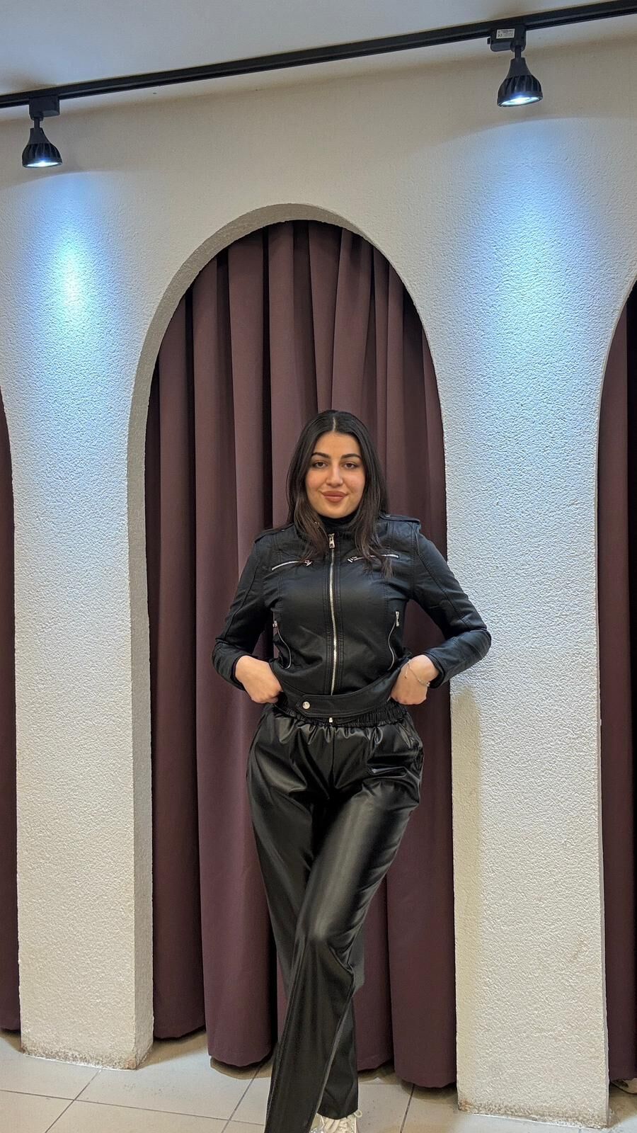 SİYAH BELİ LASTİKLİ DERİ PANTOLON