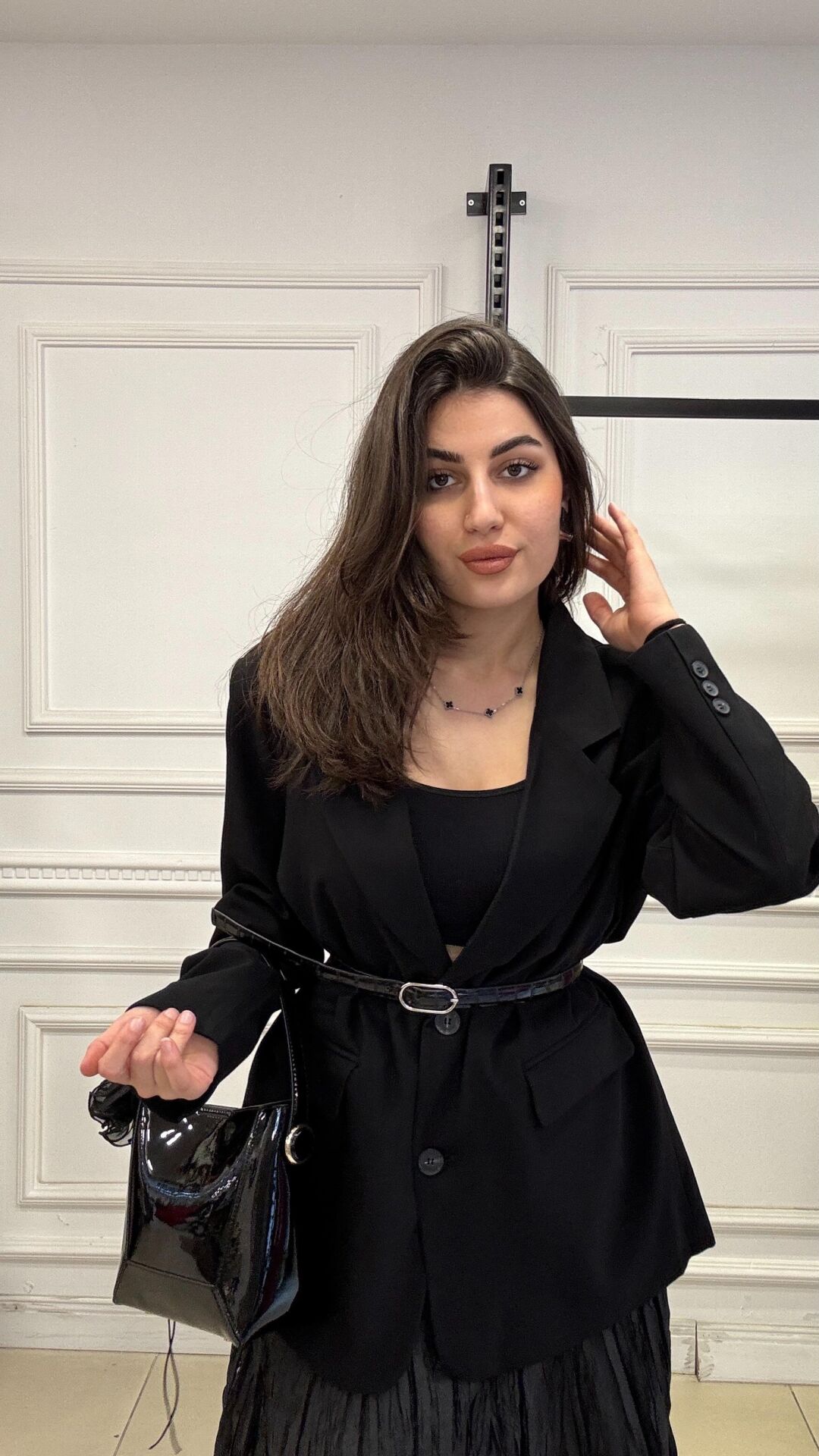 Bu siyah ceket, şıklığı ve zarafeti bir arada sunmak için tasarlandı. Kaliteli kumaşı ve detaylarıyla dikkat çeken bu ceket, her tarza ve her duruma uyum sağlıyor. Gardırobunuzun vazgeçilmez parçası olmaya aday!