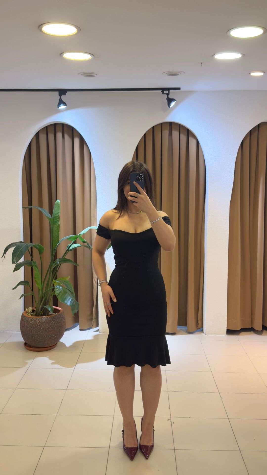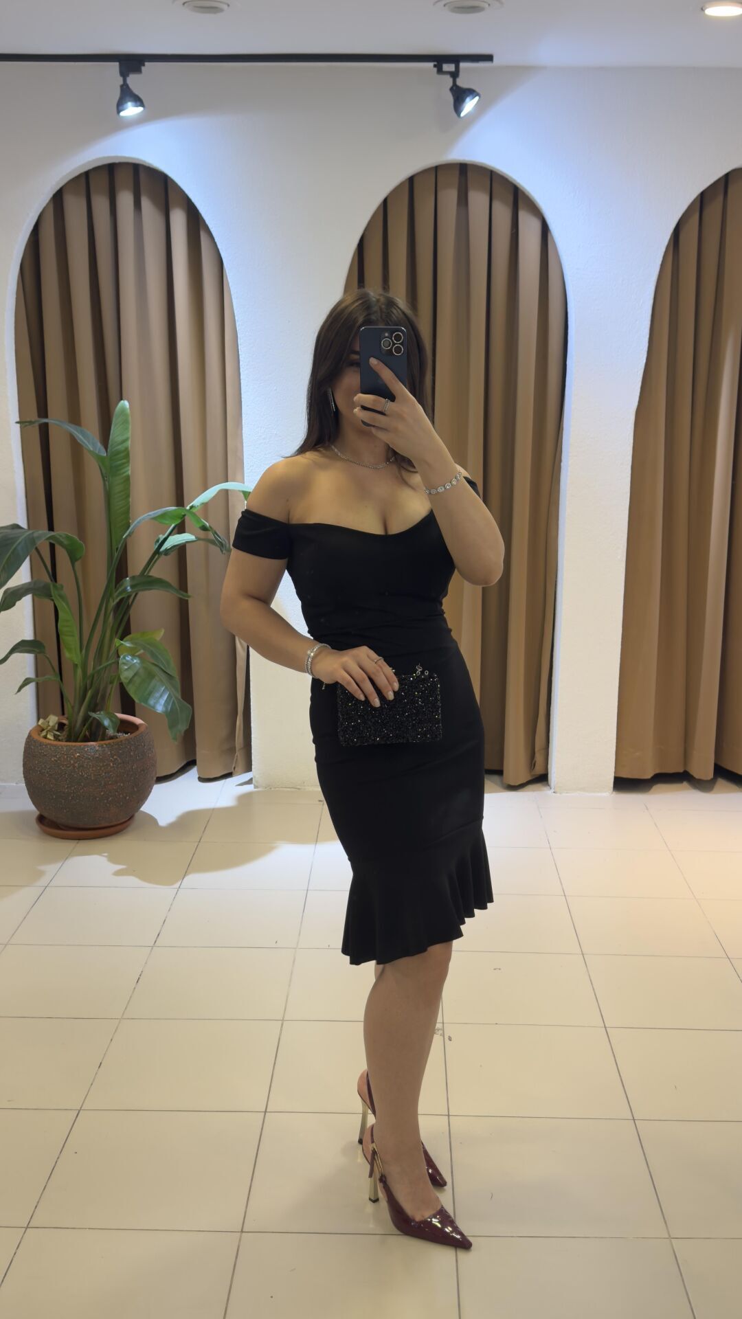 SİYAH DÜŞÜK OMUZ ELBİSE