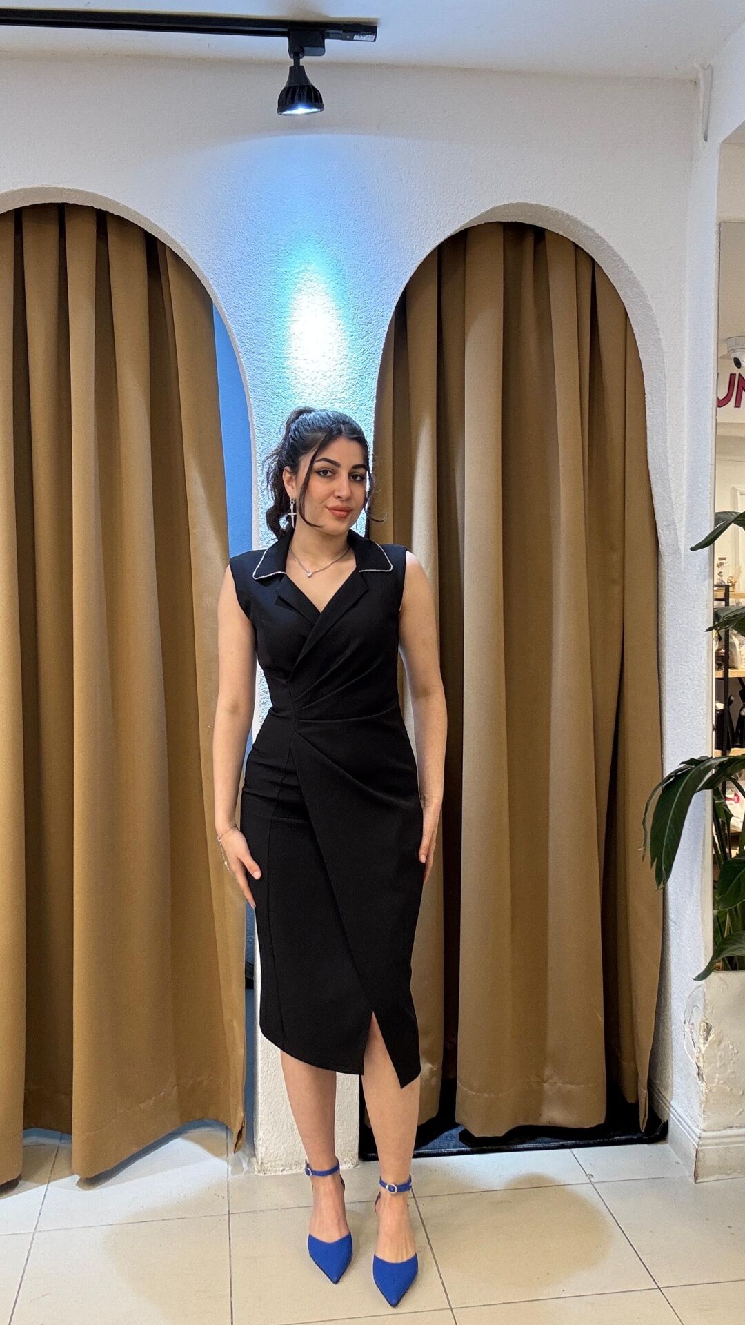 Kalın askılı midi boy şık elbise