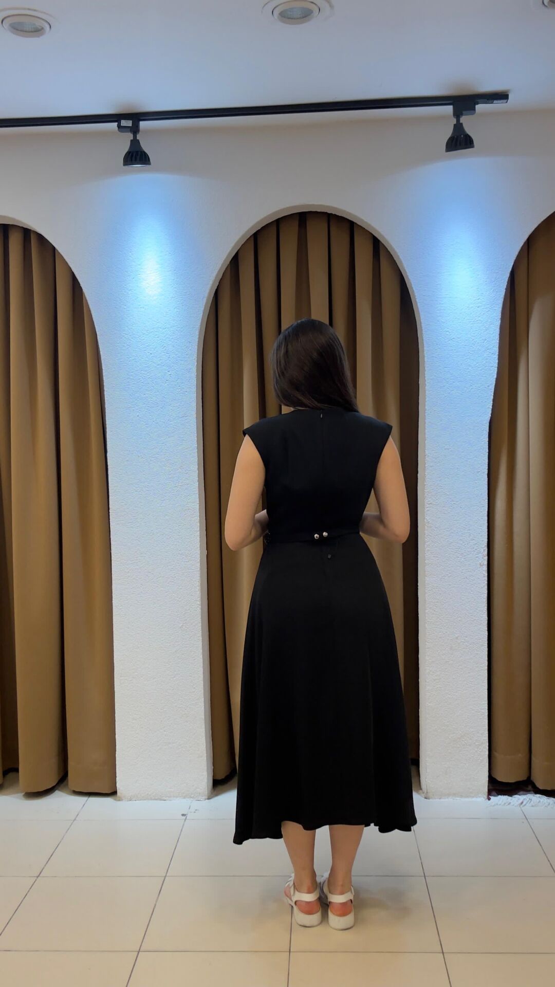 Kalın askılı kemerli elbise