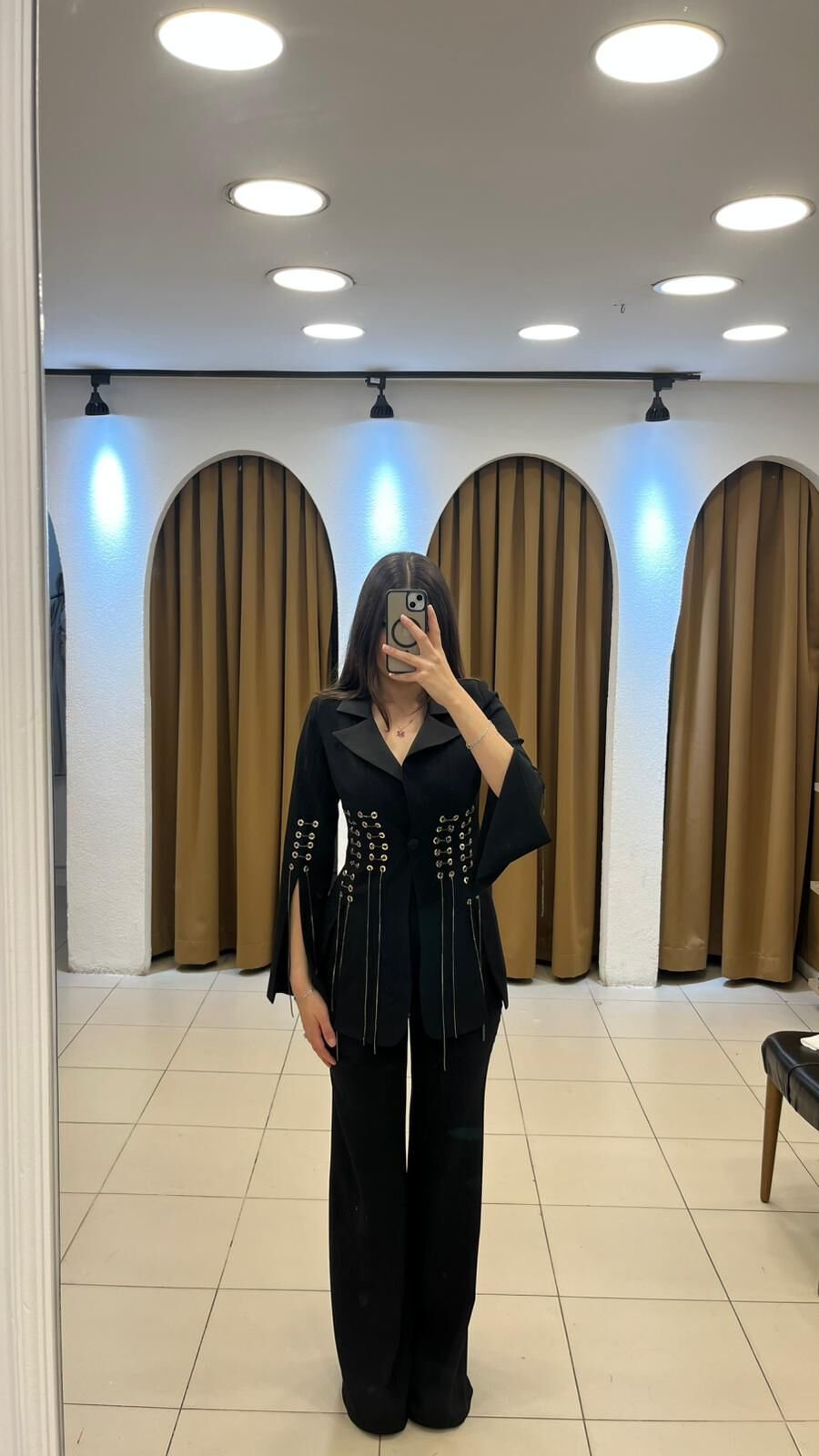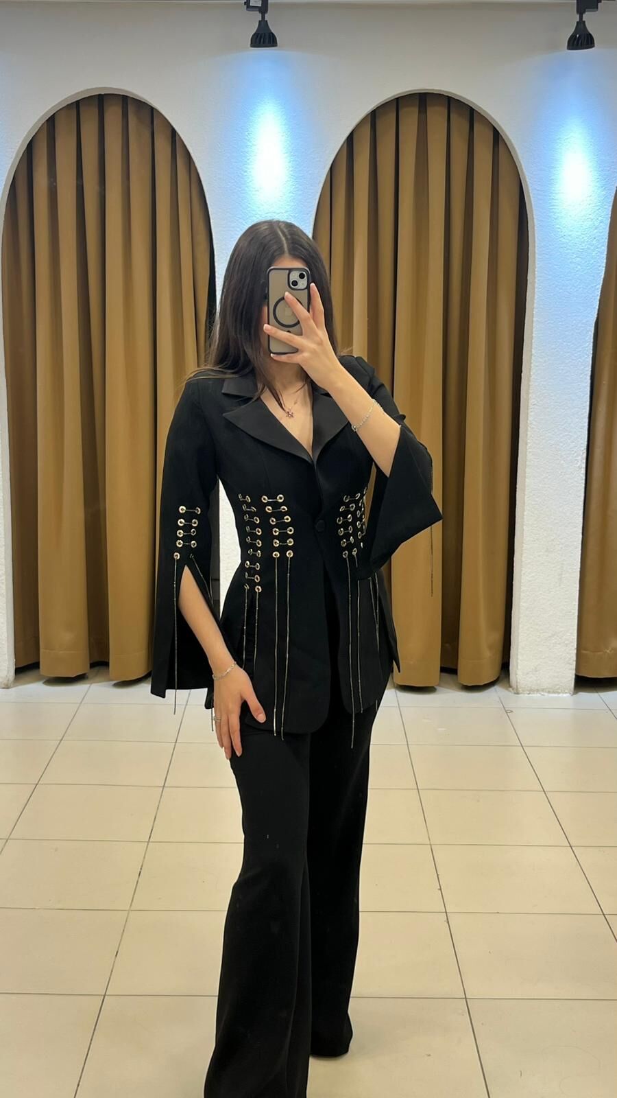 Pantolonu kumaş ispanyol ceketi ipli zincir detaylı üçlü takım