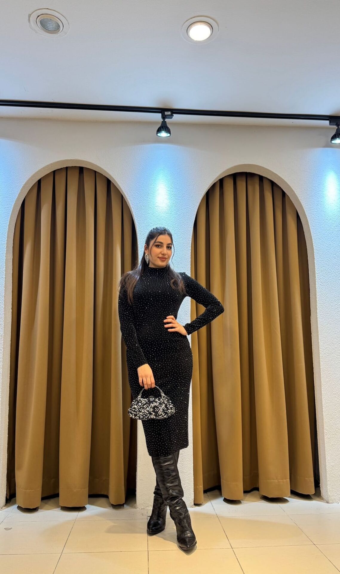 Boy: 114 cm (topuklu ayakkabıyla tam uzunluk etkisi verir, zemine değmeden şık durur)