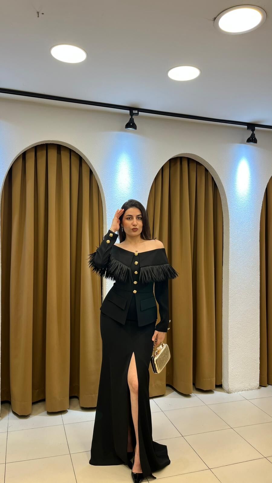 Modelin ölçüleri : Göğüs: 90 cm - Bel: 70 cm