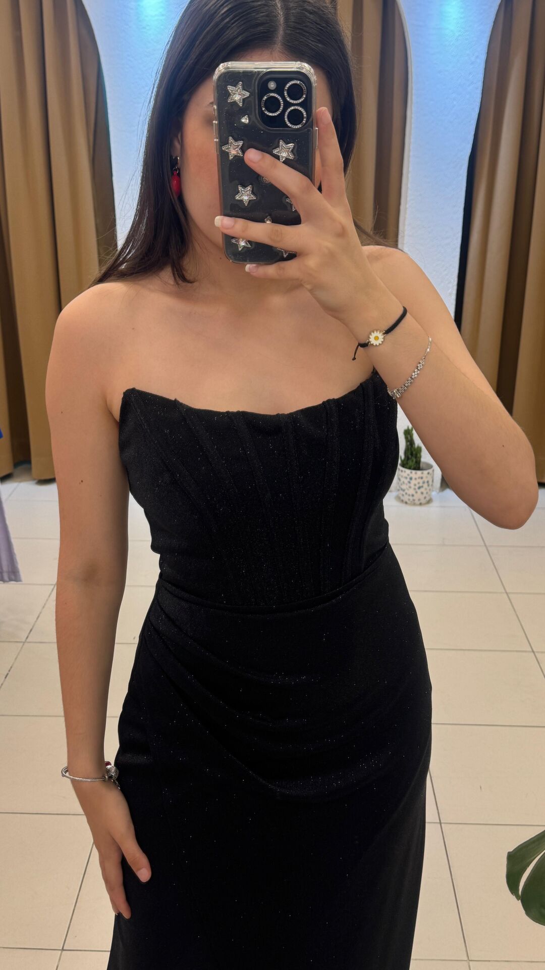 Straplez likralı korse detaylı uzun yırtmaçlı abiye