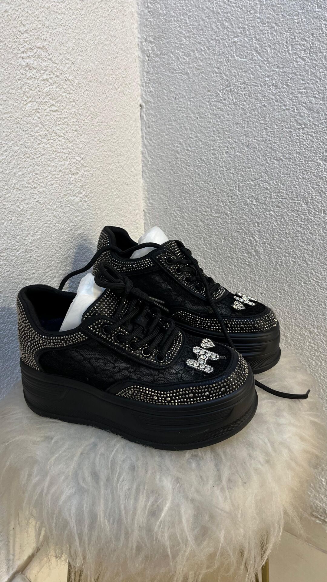 SİYAH TAŞLI PARILTILI SPOR AYAKKABI