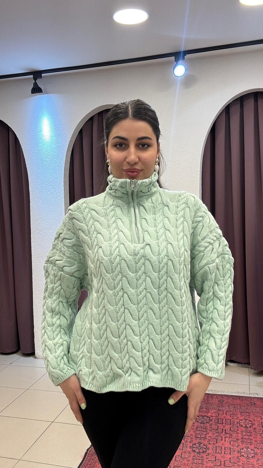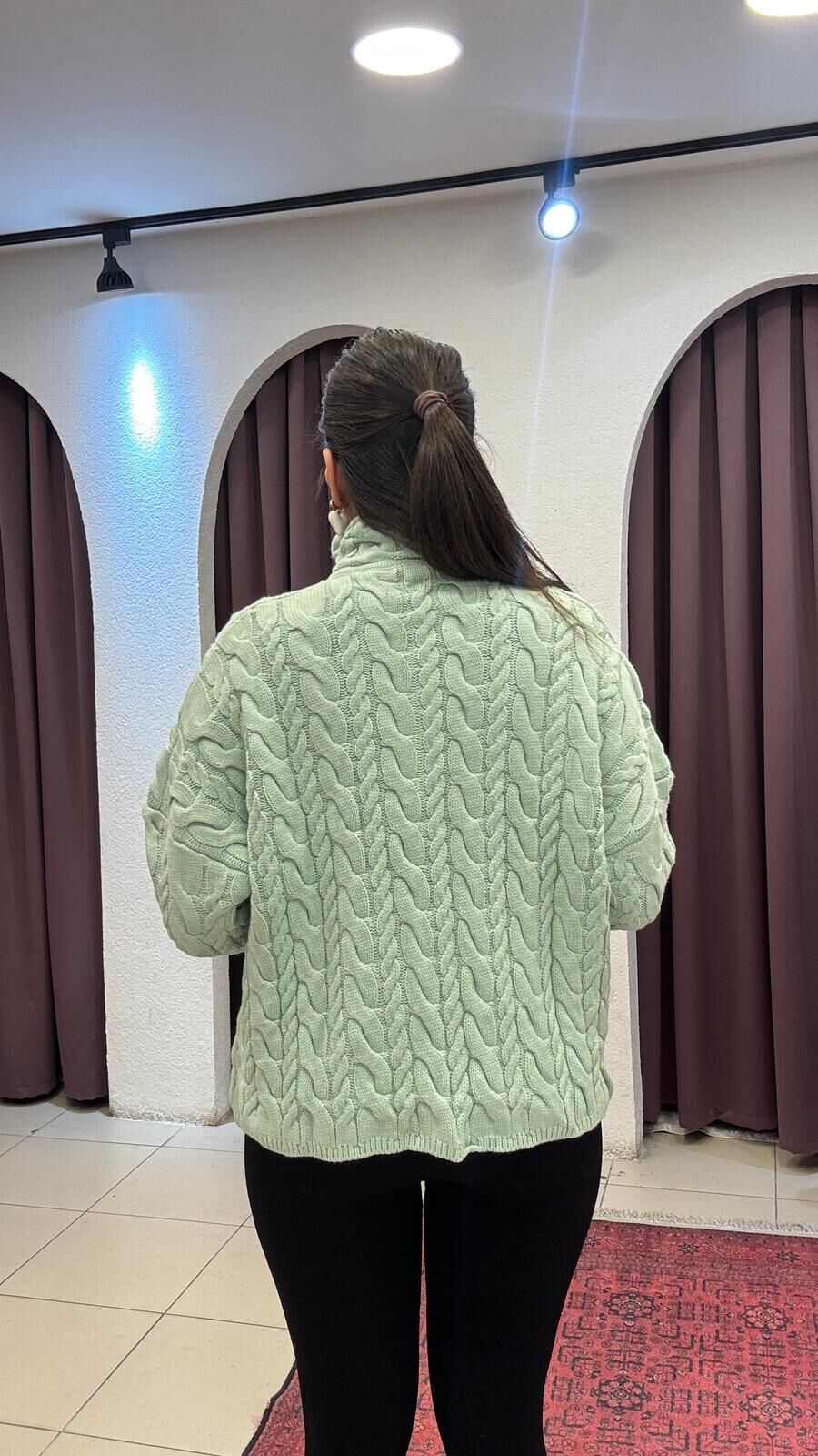 SU YEŞİLİ ÖNÜ FERMUAR DETAYLI SAÇ ÖRGÜLÜ KAZAK 46