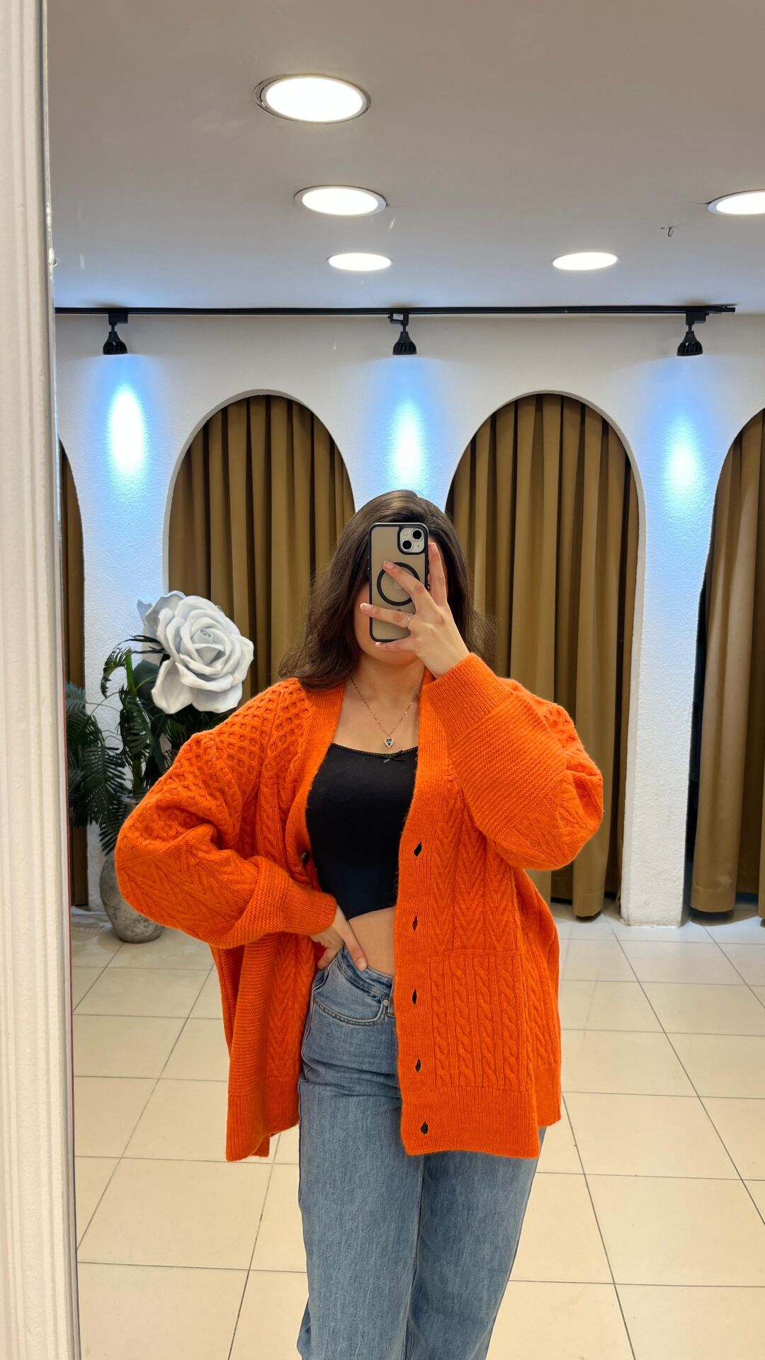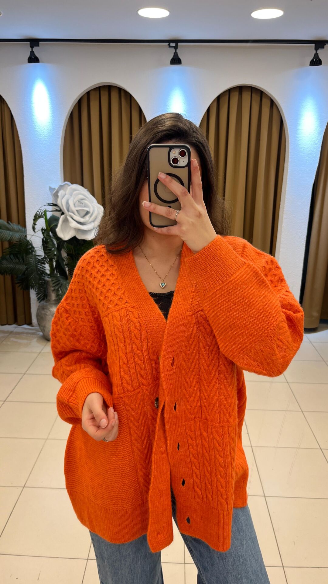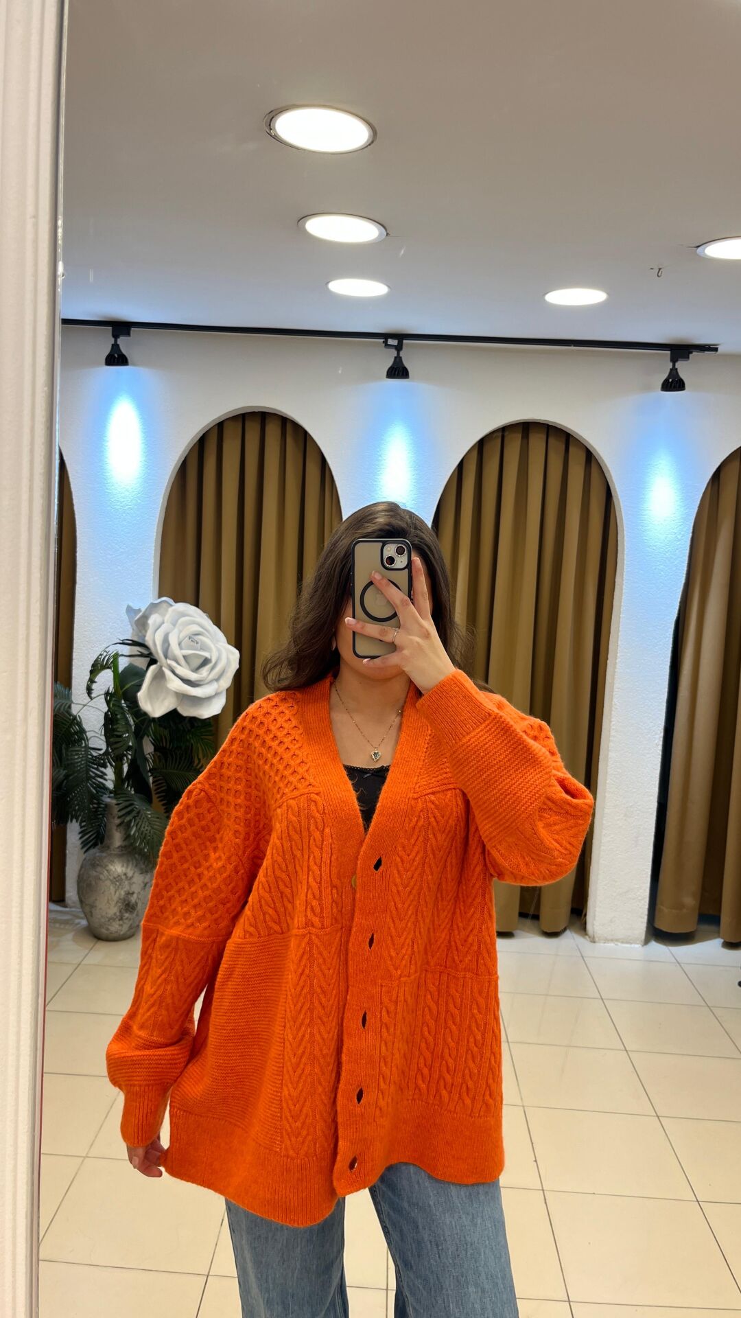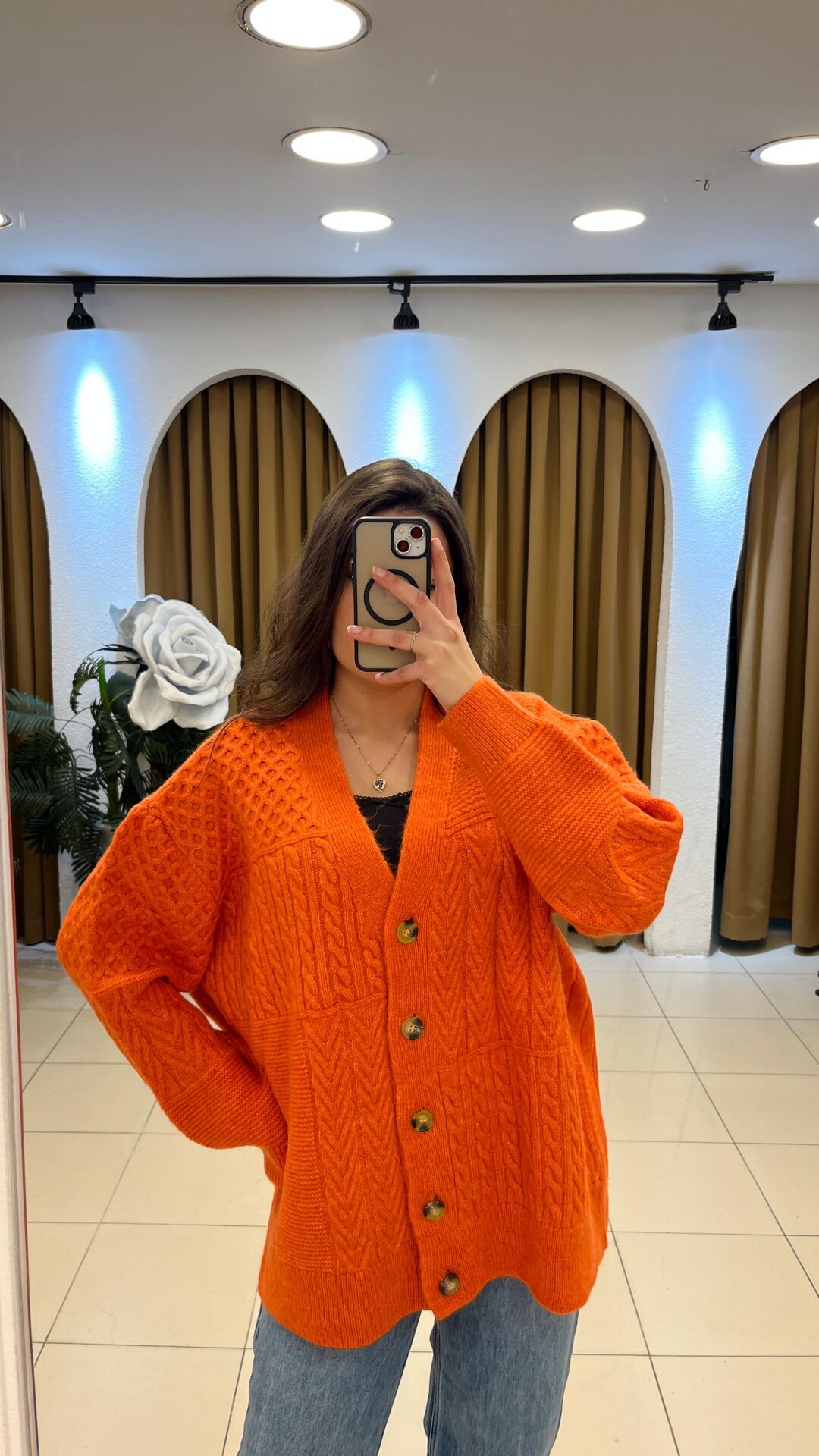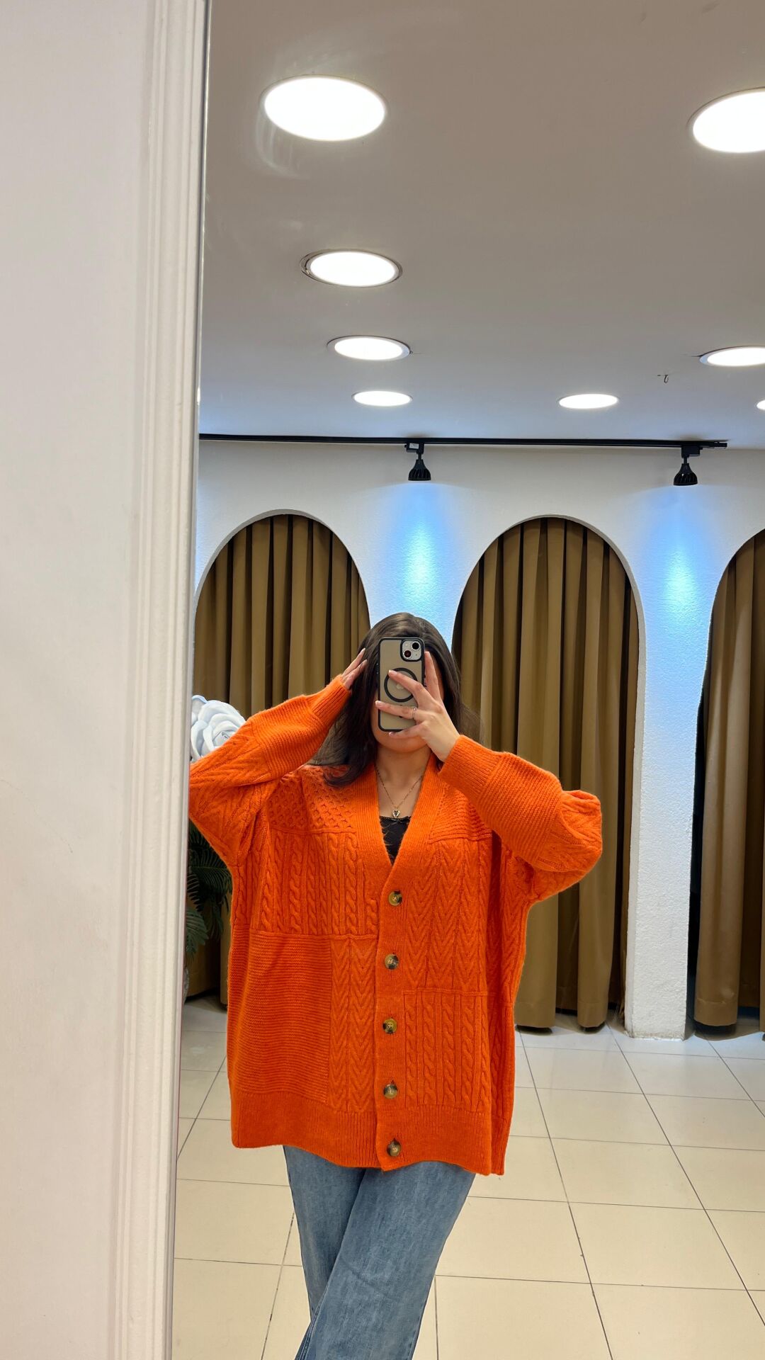 - Stil & Kesim: Oversize / salaş, bol ve rahat – uzun kollu, V yaka kardigan