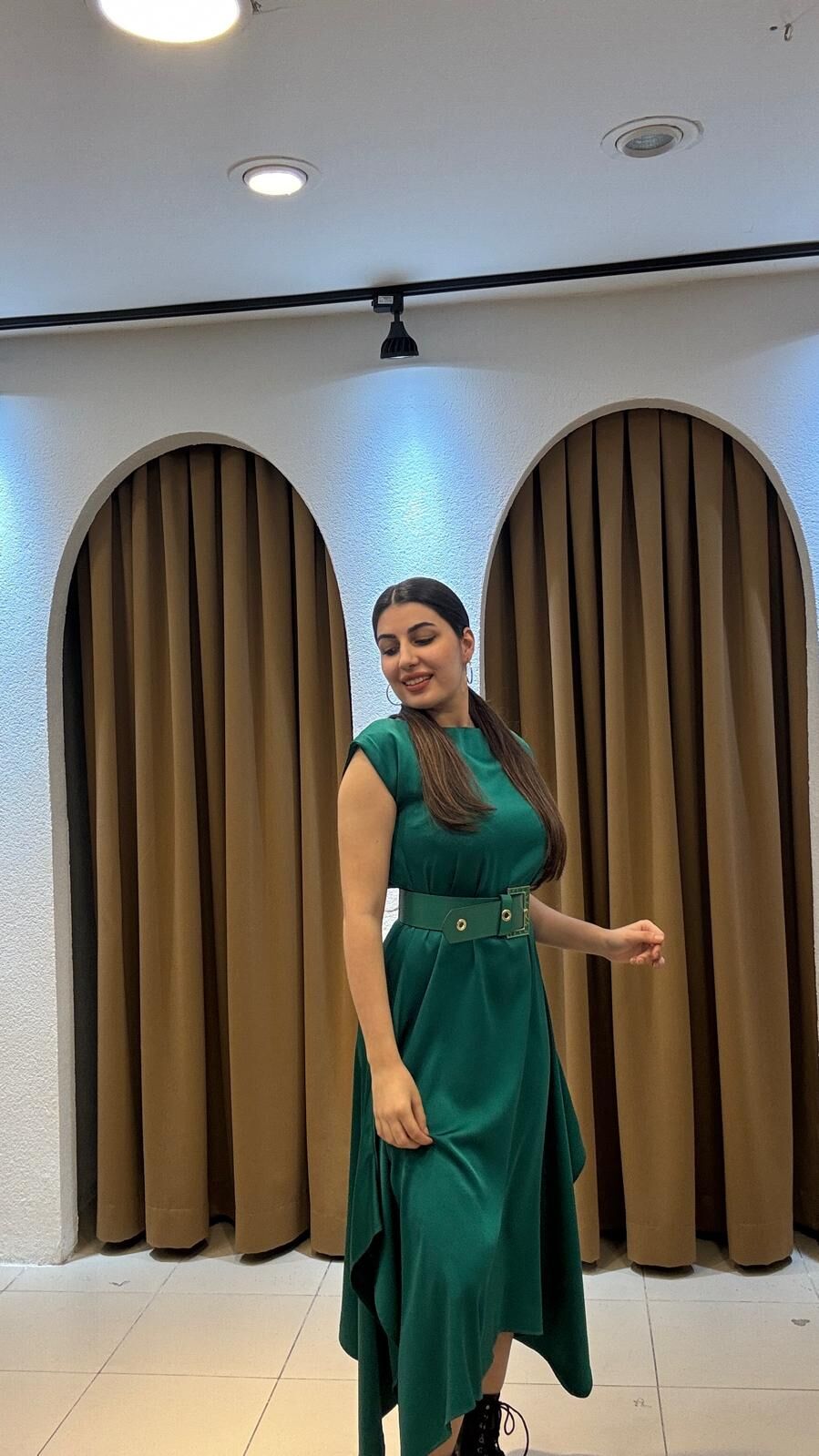 YEŞİL KEMERLİ ELBİSE